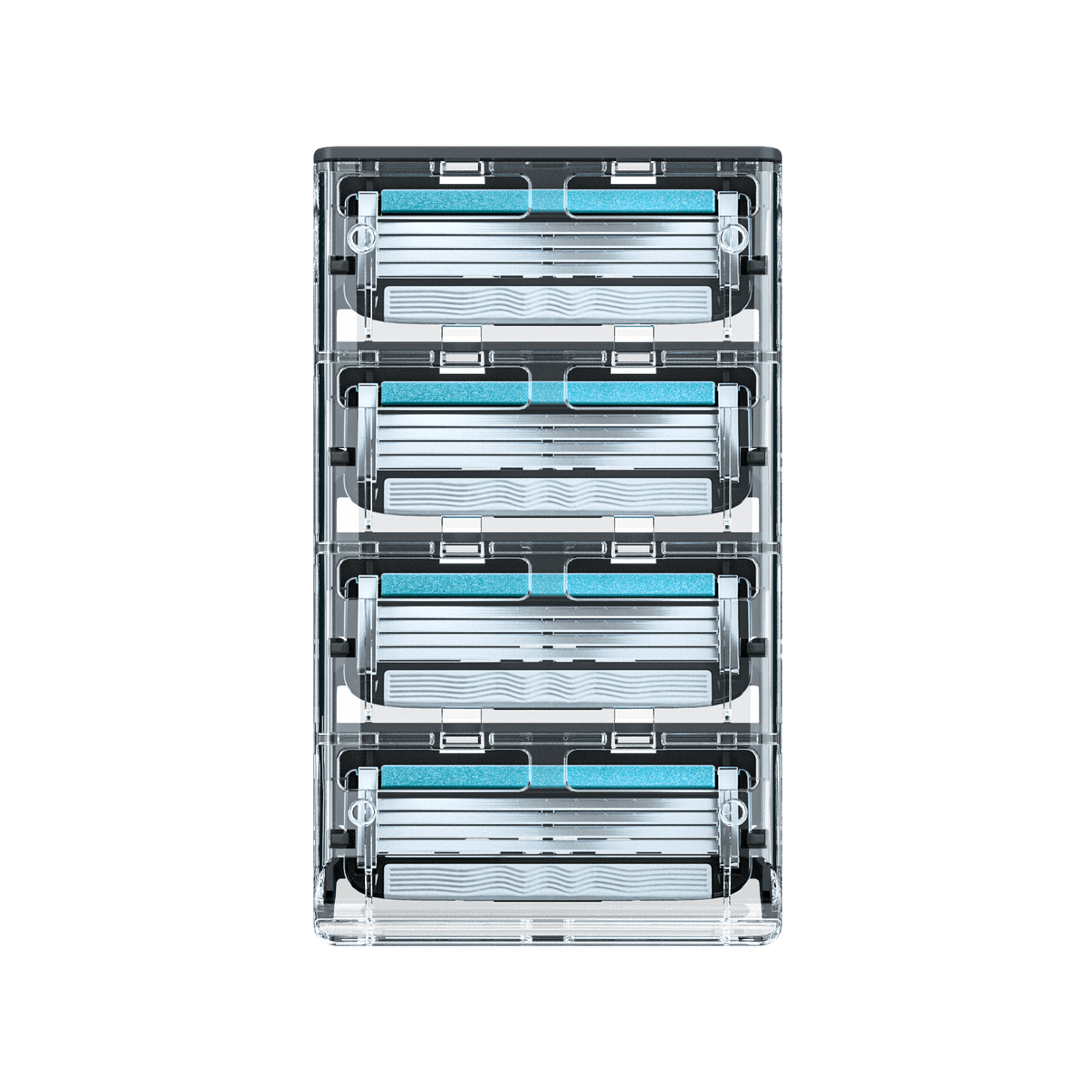 - Quatre lames en acier inoxydable coupées avec précision conçues pour un rinçage facile